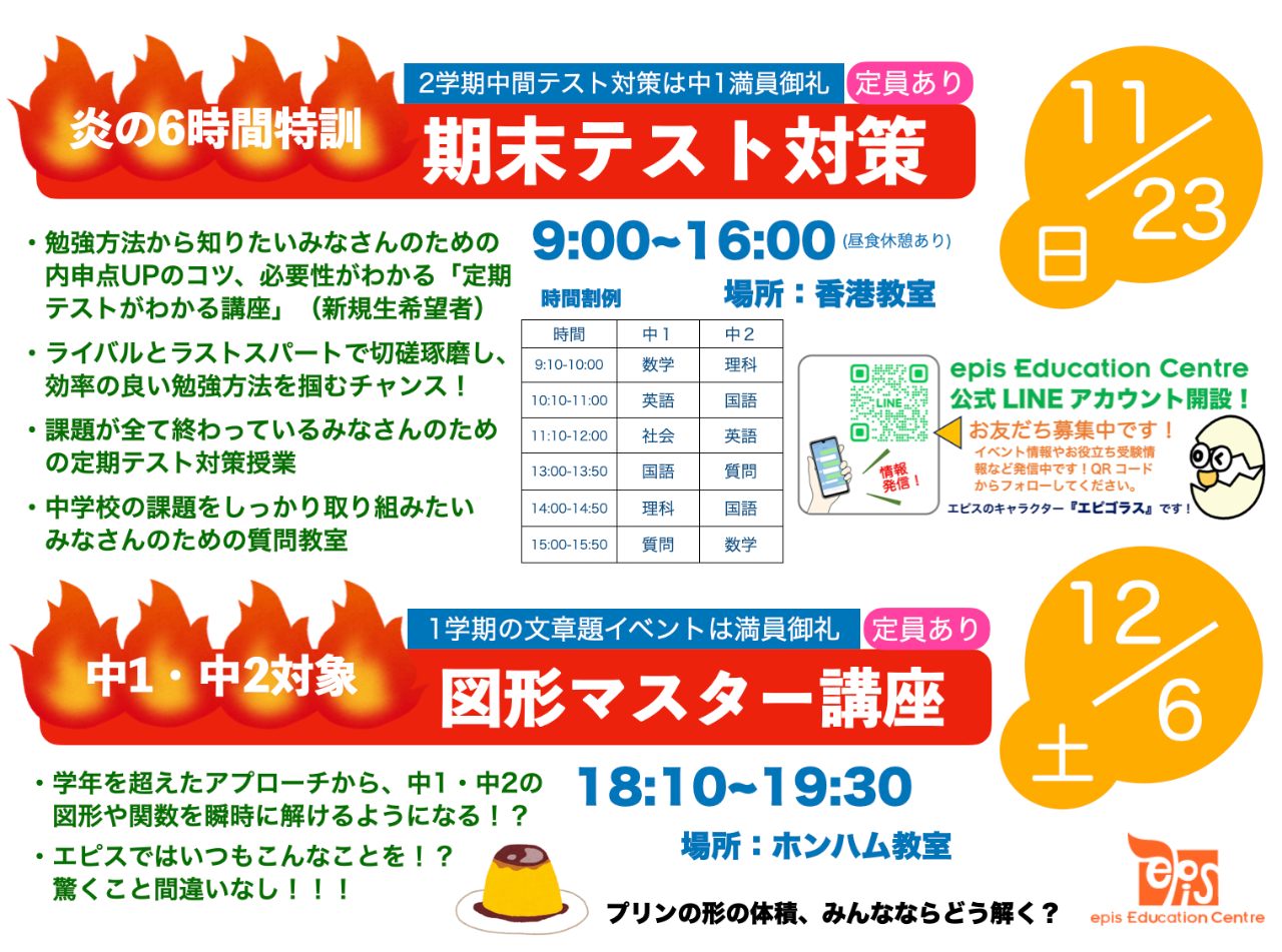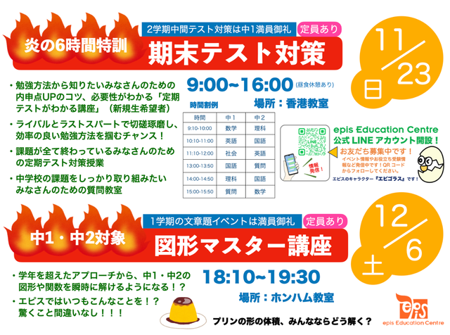 期末テスト対策&図形マスター講座開講!