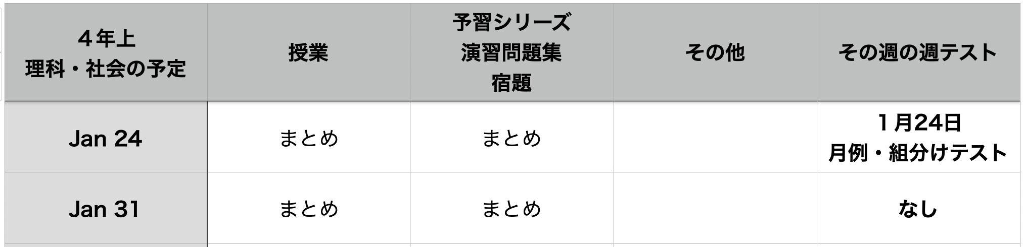 1月24日・31日(土)に使用するまとめ問題は