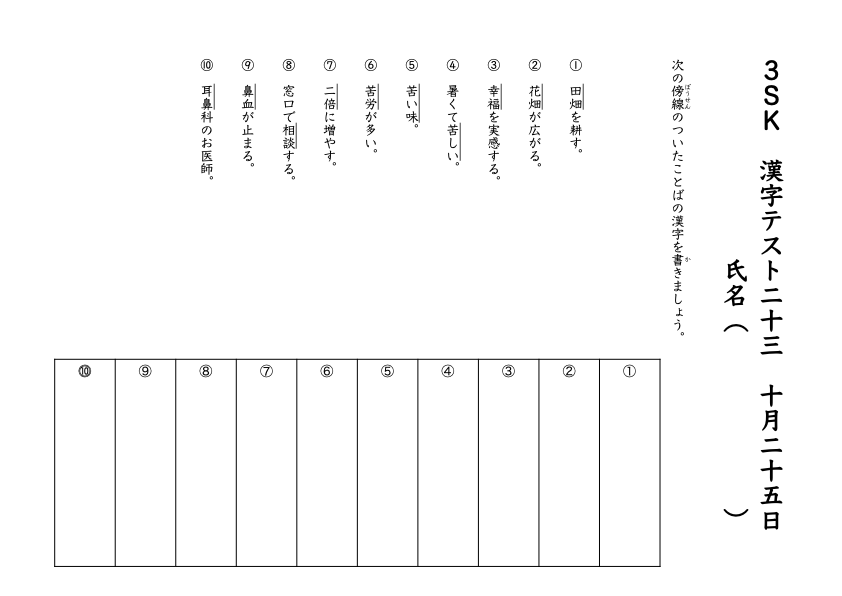・漢字テストを実施しました。